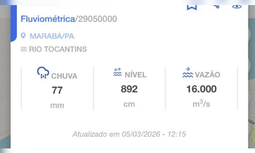 O aumento expressivo no volume de chuvas nas últimas 24 horas colocou as autoridades de Marabá em estado de atenção. De acordo com o monitoramento hidrológico, o Rio Tocantins atingiu a marca de 8,92 metros nesta quinta-feira (5), aproximando-se da cota de alerta para o início de transbordamentos em áreas baixas da cidade.