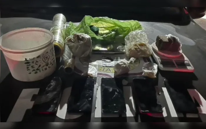 Na abordagem ao casal que se encontrava na residência, os policiais apreenderam entorpecentes análogos à cocaína, maconha e crack, além de embalagens utilizadas para o fracionamento da droga, uma balança de precisão e cinco aparelhos celulares. Segundo a PM, há indícios de que os telefones tenham sido recebidos como forma de pagamento pelo fornecimento dos entorpecentes.