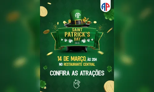 Neste sábado, 14, a Assembléia Paraense realizará a nona edição do evento "Saint Patrick’s Day", uma celebração de origem irlandesa, que passou a ser realizada em diversas capitais do mundo por ter se tornado um grande festival cultural, que envolve música, gastronomia e outros símbolos típicos da Irlanda. Na AP, o evento será no Restaurante Central ( Sede Campestre), a partir das 20 horas, com animação musical de bandas e DJ.