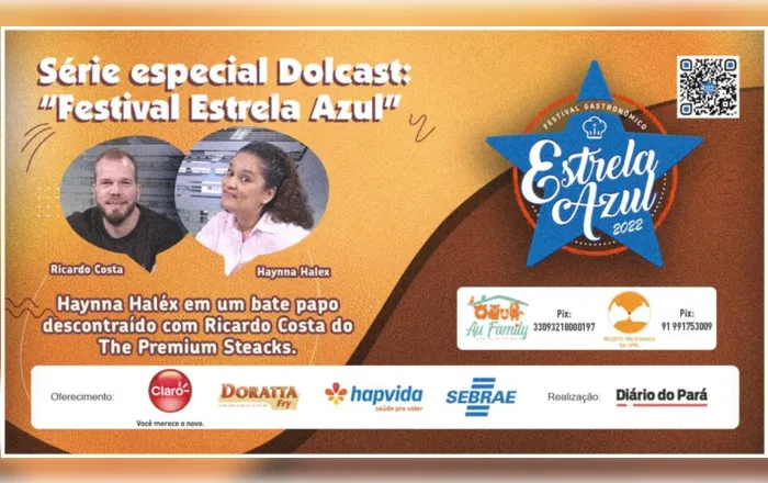 O Festival gastronômico Estrela Azul é o circuito gastronômico criado pelo DIÁRIO traz, e este ano traz 33 estabelecimentos participantes, que oferecem cardápios exclusivos com entrada, prato principal e sobremesa por R$ 69,90. A programação acontece até dia 25 de maio e tem o patrocínio da Doratta Fry, Hapvida, Sebrae e Claro. No EP de hoje Haynna Hálex bate papo com o empresário Ricardo Costa fala sobre a participação do The Premium Stecks no festival e um pouco da história do restaurante.