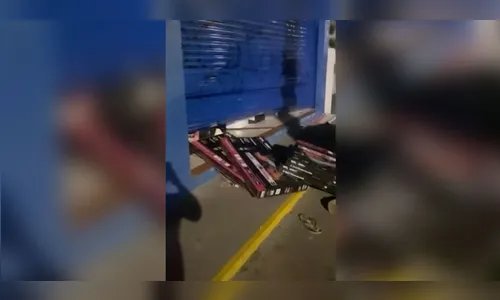 No vídeo, é possível ver os aparelhos espalhados pelo chão e as travas de segurança do portão da loja completamente destruídas. De acordo com moradores, essa não é a primeira vez que crimes como esse ocorrem na região.