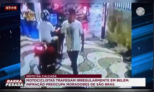 Câmeras de segurança registraram o momento em que sete motocicletas trafegam pela calçada na Travessa 9 de Janeiro, no bairro de São Brás, em Belém. Enquanto pedestres caminham, os veículos passam ao lado, colocando vidas em risco.