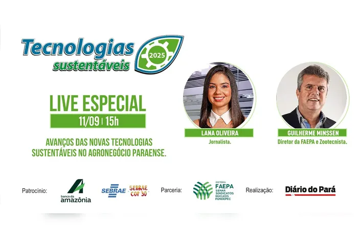 👉 Não perca a live especial e descubra como a Amazônia está inovando para o mundo. No bate-papo, a jornalista Lana Oliveira e Guilherme Minssen, Diretor da FAEPA e Zootecnista.