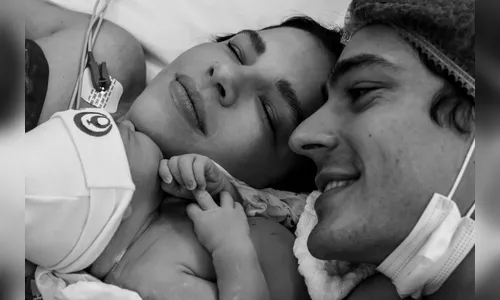 A artista, conhecida por trabalhos na Globo e Record, publicou uma foto emocionante ao lado do recém-nascido e do marido, João Luis Diniz d'Avila. Na legenda, expressou gratidão: "Deus te abençoe, meu filho!".