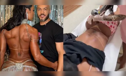 Gracyanne Barbosa deu início, nesta terça-feira (10), ao processo de remoção de uma tatuagem íntima feita em homenagem ao ex-marido, o cantor Belo. A decisão foi tornada pública cerca de dois anos após o término do casamento entre os dois.