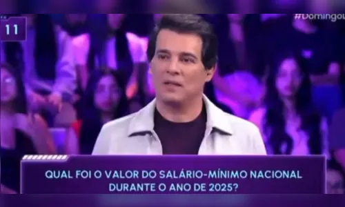 A situação aconteceu durante o lançamento do game show “Acertando em Cheio”, uma das apostas da emissora para 2026. A pergunta exibida no telão parecia simples: “Qual foi o valor do salário-mínimo durante o ano de 2025?”.