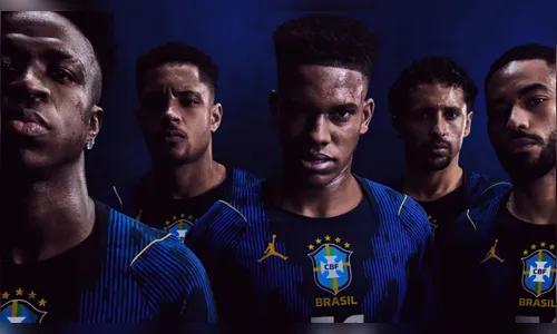 O modelo apresentado traz dois tons de azul mais fechados do que os utilizados em ciclos recentes, sendo um deles próximo ao preto. O design também inclui detalhes em amarelo e azul-turquesa. Outro elemento que chama atenção é o posicionamento do escudo da Confederação Brasileira de Futebol centralizado no peito, enquanto o logotipo amarelo da Jordan aparece no lugar do tradicional símbolo da Nike na camisa reserva.