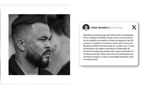 Horas após o acidente que vitimou o preparador físico do Águia de Marabá, o Governador do Pará, Helder Barbalho, expressou solidariedade nas redes sociais, em luto pelo profissional.