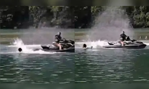 Os registros que viralizaram na internet capturam o instante em que a mulher é lançada na água. Na sequência, o homem aparece conduzindo a moto aquática em alta velocidade, realizando manobras perigosas nas proximidades da vítima, inclusive próximo à cabeça dela, o que aumentou o risco de ferimentos graves.
