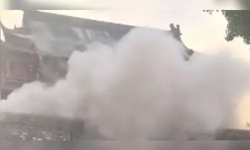 Vídeos compartilhados nas redes sociais mostram o momento em que o telhado começa a ceder, liberando uma avalanche de telhas que caem de mais de dois andares de altura. Turistas que estavam no local registraram a cena enquanto deixavam a área às pressas. Apesar do susto, não houve feridos.