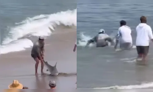 Imagens feitas por banhistas mostram o momento em que ele, com o apoio de mais duas pessoas, puxa o tubarão pela cauda até o mar. Antes de soltá-lo, o grupo ainda tenta remover o anzol da boca do animal. O jovem chega a deitar sobre o tubarão e abrir sua mandíbula, em uma cena que chamou a atenção de famílias que observavam da areia.