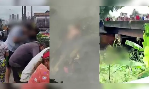 Moradores e transeuntes se assustaram ao se deparar com a cena. Como mostram as imagens, a vítima estava sem camisa e presa dentro do canal, próxima à estrutura da ponte.