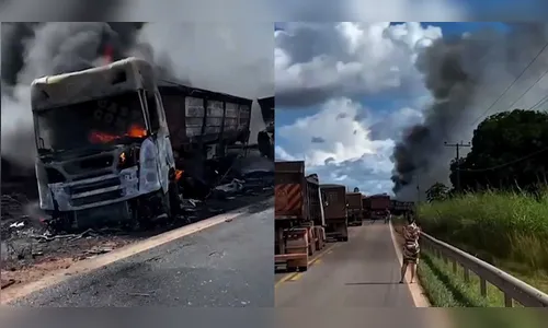 O impacto foi tão violento que uma das carretas pegou fogo logo após a batida. As chamas, conforme mostram imagens compartilhadas nas redes sociais, deram origem a uma densa coluna de fumaça, que se espalhou pela rodovia e comprometeu a visibilidade, aumentando ainda mais o risco de novos acidentes na área.