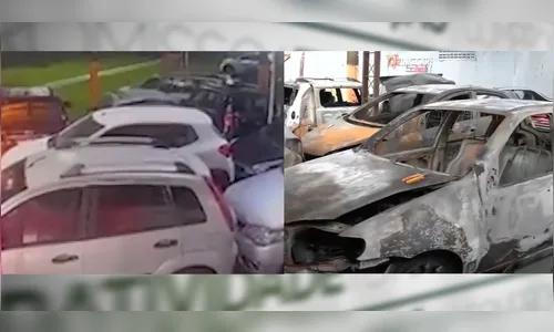Imagens feitas no local mostram vários veículos completamente destruídos pelas chamas. Um dos carros, avaliado em cerca de R$ 100 mil, teve perda total. Outros também sofreram danos severos.