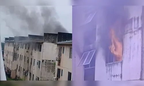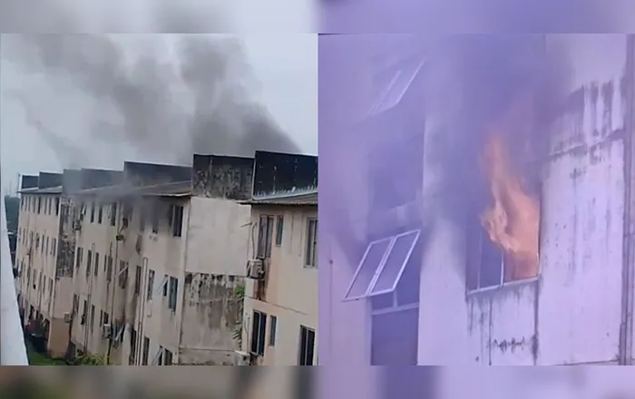 Imagens que circulam nas redes sociais mostram o desespero de moradores do conjunto habitacional. Nos registros, é possível perceber que um dos apartamento está completamente em chamas e com muita fumaça.
