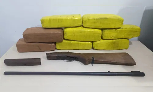 Dentro do volume, foram encontradas oito barras de substância análoga à maconha, que totalizaram aproximadamente 8 kg, além de uma espingarda calibre 36 de fabricação caseira e sem numeração aparente.