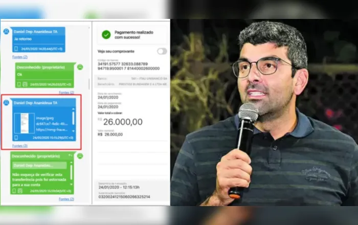 As provas incluem mais de 200 páginas de transcrições de mensagens entre Daniel Santos, a empresária Bruna Francisco Almeida Rodrigues — identificada como proprietária da fazenda —, o vice-prefeito Hugo Fernando de Souza Athayde, o empreiteiro Danillo da Silva Linhares e Liane Cristina Peres Farias Silva, responsável financeira de uma construtora.