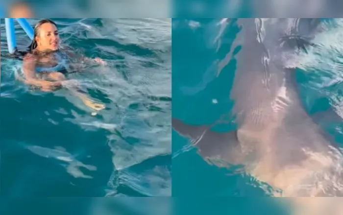 Uma turista registrou um encontro inesperado com um tubarão enquanto nadava em Fernando de Noronha. O vídeo, compartilhado nas redes sociais, mostra o momento em que o animal se aproxima dela.