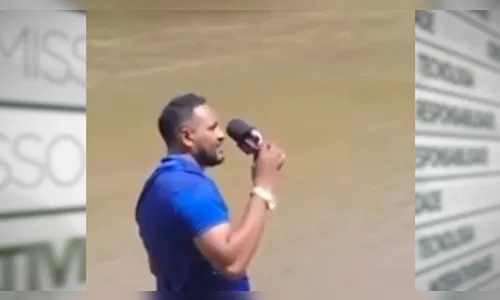 O jornalista fazia a passagem descrevendo o caso e entrou no rio na intenção de mostrar às pessoas o quanto o local é fundo. Em um determinado momento, ele comenta: "Eu acho que tem um negócio aqui no fundo da água.” Após isso, ele recua e diz: "Não, eu não vou não, tenho medo".