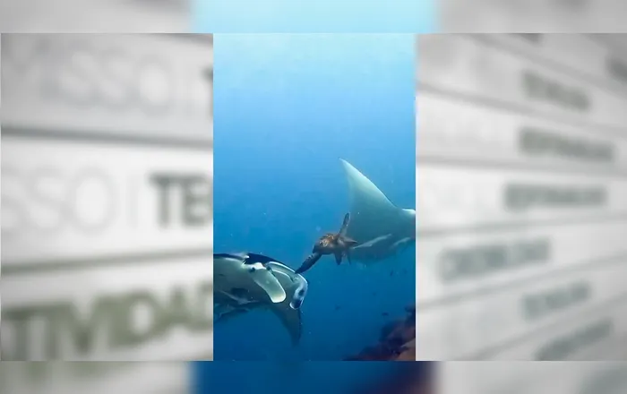 Um vídeo que circula na web tem divertido internautas e mostra um momento inusitado no fundo do mar. As imagens exibem uma tartaruga-marinha se aproximando de uma arraia-manta, em um movimento inesperado.